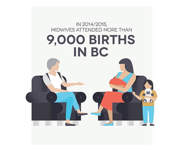 In BC, registered midwives offer primary maternity care to healthy pregnant clients and their newborn babies from early pregnancy, through labour and birth, until about six weeks following delivery. They practice evidence-based, client-centered maternity and newborn care and are an established part of the BC health care system.
